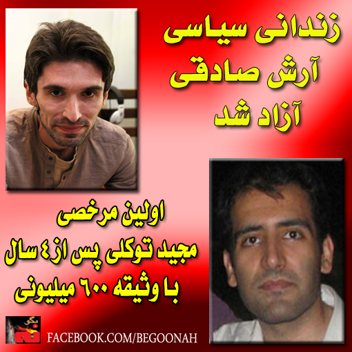 گالری فیلم و تصویر آزادی آرش صادقی ومرخصی رفتن مجید توکلی Date: اکتبر 22, 2013Author: begoonah 0 دیدگاه اشتراکگذاری این:بیشتر به اشتراک گذاشتن در فیسبوک (در پنجرۀ تازه باز میشود) فیسبوک اشتراکگذاری در X (در پنجرۀ تازه باز میشود) X چاپ (در پنجرۀ تازه باز میشود) چاپ اشتراکگذاری در تلگرام (در پنجرۀ تازه باز میشود) تلگرام اشتراکگذاری در واتساپ (در پنجرۀ تازه باز میشود) واتساپ