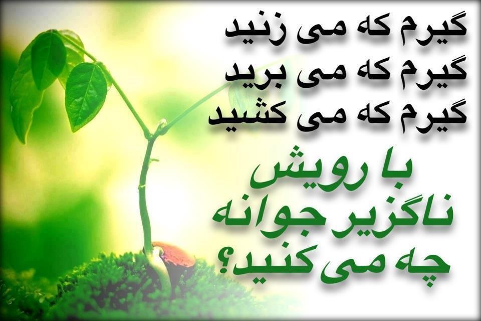 گالری فیلم و تصویر گیرم که می زنید ….گیرم که می برید …گیرم که می کشید … با رویش ناگزیر جوانه چه می کنید Date: اکتبر 22, 2013Author: begoonah 0 دیدگاه اشتراکگذاری این:بیشتر به اشتراک گذاشتن در فیسبوک (در پنجرۀ تازه باز میشود) فیسبوک اشتراکگذاری در X (در پنجرۀ تازه باز میشود) X چاپ (در پنجرۀ تازه باز میشود) چاپ اشتراکگذاری در تلگرام (در پنجرۀ تازه باز میشود) تلگرام اشتراکگذاری در واتساپ (در پنجرۀ تازه باز میشود) واتساپ
