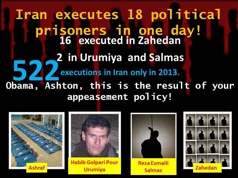 سیاست مماشات با ملایان دست جمهوری اسلامی را در آدمکشی باز گذاشته است. این نتیجه سیاست ناز و عشوه اوباما و اشتون و سازمان ملل برای روحانی و ظریف و خامنه ای است. آدمکشی پشت آدمکشی. دستان خونین آنها نیز به اندازه دستان دژخیمان جمهوری اسلامی به خون این انسانهای پاک آلوده است.