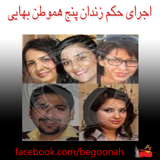 اسامی این پنج هموطن بهایی عبارتست از: آرمان مختاری- نگین احمدیان- حوریه محسنی- بهناز حدادزاده و نگار ملکزاده.