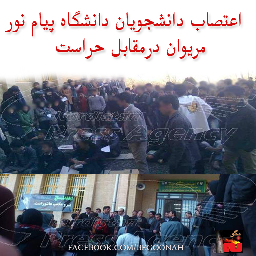 دانشجویان در مقابل حراست دانشگاه پیامنور مریوان اعتصاب کردند