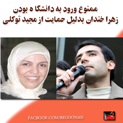 ممنوع ورود بودن به دانشگاه زهرا خندان به دلیل حمایت از زندانی سیاسی مجید توکلی