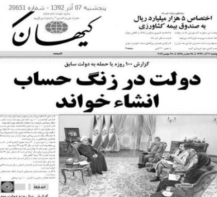 اما اين مصاحبه که قرار بود ارائهٴ کارنامه 100روزهٴ خودش باشد، اساساً به توجيه زهر خوران اتمی اختصاص يافت. شايد گوياترين توصيف از اين مصاحبه را، کيهان خامنه ای به دست داده باشد که در تيتر درشت خود نوشت: «دولت در زنگ حساب انشاء خواند».
