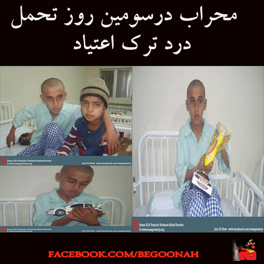 پشت در بخش اطفال و شنیدن صدای گریه ی محراب.در باز میشه ؛ محراب پشت در وایساده و گریه میکنه و محمد علی ( از بچه های بستری در اتاق محراب ) مشغول آروم کردنشه. میگیرمش تو بغل؛وقتی خواستم ببرمش تو تختش نیومد ولی وقتی ماشینشو دید با همون اشک های روی گونه هاش خندید… اون خنده ی محراب همه ی دنیا بود واسم…