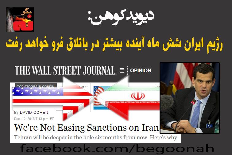 دیوید کوهن معاون مبارزه با تروریسم و اطلاعات مالی در وزارت خزانه داری آمریکا در مقاله ای در وال استریت ژورنال از افزایش فشار و تحریم علیه رژِیم ایران خبر داد و نوشت: