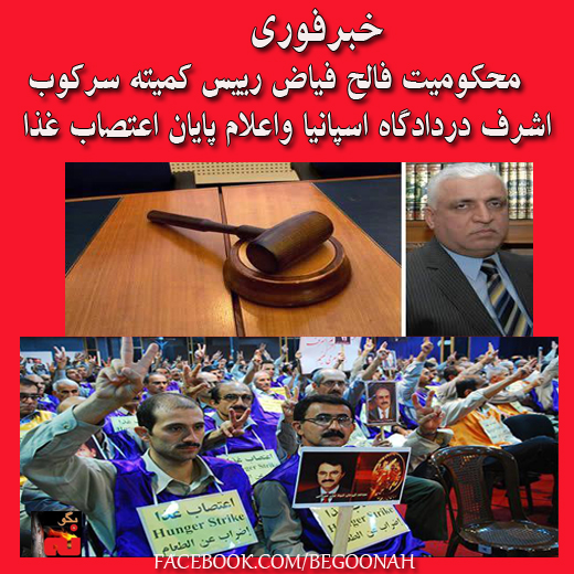 محكوميت فالح فياض رئيس كميته سركوب اشرف در دادگاه اسپانيا و اعلام پايان اعتصاب غذاي جهاني از سوي خانم مريم رجوي