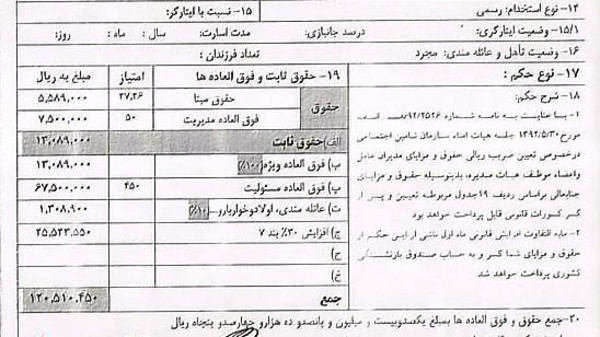 در شرایطی که بسیاری از بازنشستگان در ایران با دریافت حقوق ماهیانه در حدود هزار تومان به شدت تحت فشار اقتصادی قرار دارند، رییس صندوق بازنشستگی حقوق ماهیانه ۱۲ میلیون تومانی یعنی ۲۵ برابر یک بازنشسته معمولی دریافت می کند.