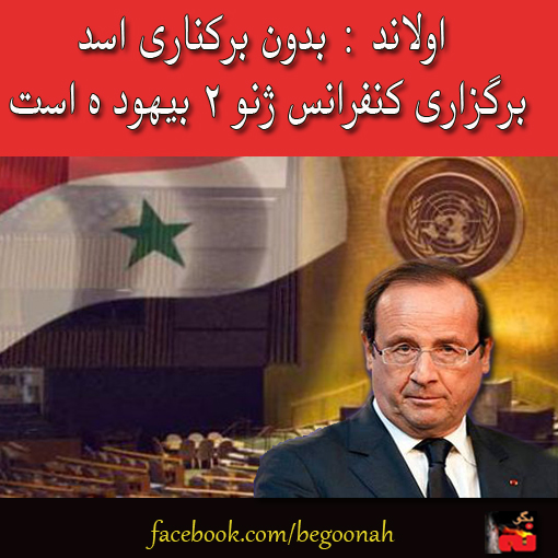 فرانسوا اولاند رئیس جمهوری فرانسه روز جمعه ۲۰.۱۲.۲۰۱۳اعلام کرد در صورتی که کنفرانس ژنو۲ به برکناری بشار اسد از منجر نشود، نشستی بیهوده خواهد بود.