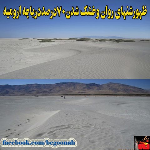 بنا به اعتراف رسانه های حکومتی هم اکنون 70 درصد دریاچه ارومیه خشک شده است و پدیده ای نظیر شنهای روان مناطق کویری در شعاع چندین کیلومتر مربع در محدوده های ساحلی شمال غرب دریاچه ارومیه و حتی داخل آن در حال شکل گیری است. در حال حاضر سطح تراز دریاچه ارومیه به کمترین میزان ثبت شده در 100 سال اخیر رسیده در حالی است که وسعت آن به 16 درصد وسعت اصلی ،کاهش یافته است. وضعیت فعلی پارک ملی دریاچه ارومیه بحرانی ترین وضعیت در قرن اخیر است و محیط بانان و کارشناسانی که تا اوایل بهار امسال توسط قایق به جزایر دریاچه طی مسیر می نمودند, امروز برای رسیدن به آن، از خودرو به عنوان وسیله ایاب وذهاب استفاده مینمایند.