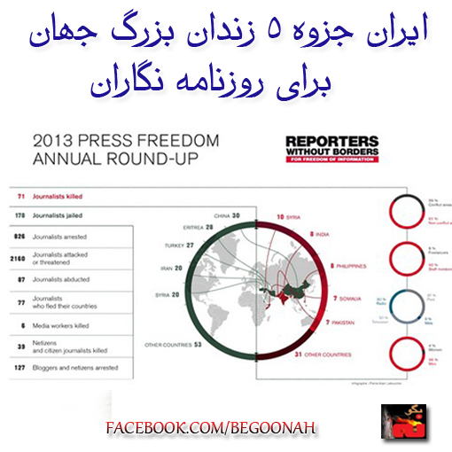 در این رابطه، چین، اریتره، ترکیه، ایران و سوریه جزو ٥ زندان بزرگ جهان برای روزنامەنگاران به حساب میآیند.