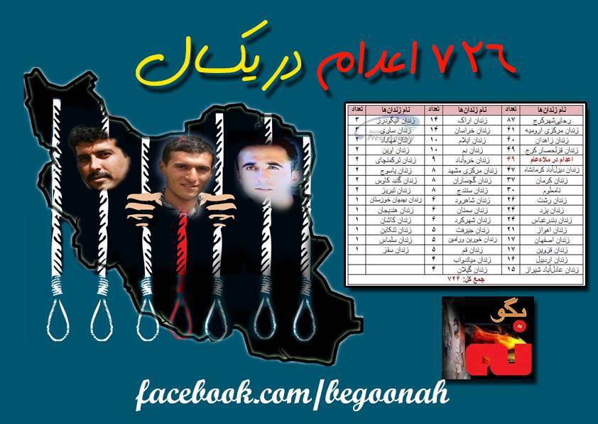 آماری از اعدام ٧٢٦ نفر در ایران در سال ٢٠١٣
