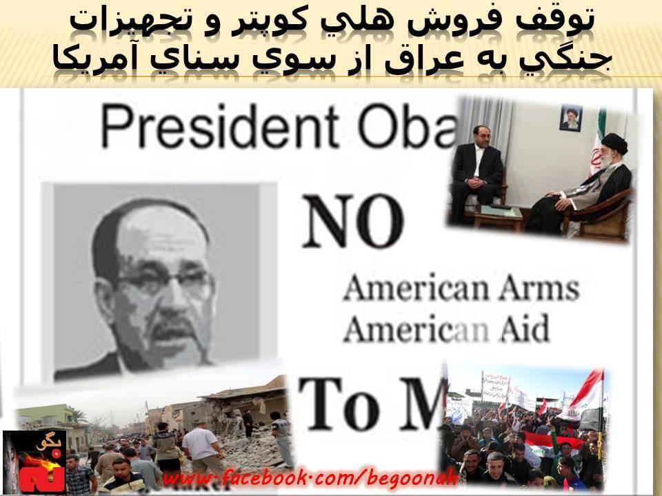 دستياران كنگره گفتند سناتور منندز رئيس كميته روابط خارجي سنا، فروش هلي كوپترهاي آپاچي و ديگر تجهزات را به عراق متوقف كرده است، زيرا او نگران است دولت عراق اين سلاحها را بجاي دفاع از ملت خود، براي سركوب استفاده كند.