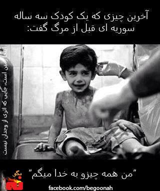 گالری فیلم و تصویر آخرین چیزی که یک کودک سه ساله قبل از مردن گفت: » من همه چی رو به خدا میگم!» Date: ژانویه 13, 2014Author: begoonah 0 دیدگاه اشتراکگذاری این:بیشتر برای اشتراکگذاشتن فیسبوک خود کلیک کنید (در پنجرۀ تازه باز میشود) فیسبوک اشتراک گذاشتن توسط اس ام اس (در پنجرۀ تازه باز میشود) X برای چاپ کردن کلیک کنید (در پنجرۀ تازه باز میشود) چاپ برای اشتراکگذاری روی Telegram کلیک کنید (در پنجرۀ تازه باز میشود) تلگرام برای اشتراکگذاری روی WhatsApp کلیک کنید (در پنجرۀ تازه باز میشود) واتساپ