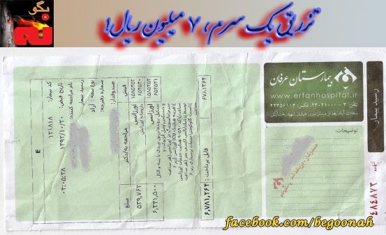 به گزارش سایت حکومتی خبرآنلاین با این مقدمه گزارش داد: بیماری برای تزریق یک سرم معمولی در اورژانس بیمارستان عرفان در غرب تهران، ۶۷۸ هزار تومان پرداخت کرده است. هر چند که در فاکتور بیمارستان سیاههای از خدمات مختلف نوشته شده که البته جمع آنها ۶۷۸ هزار تومان نمیشود. علاوه بر این هزینهها، این بیمار در زمان ورود به اورژانس، ۱۵ هزار تومان هزینه پذیرش پرداخته است.