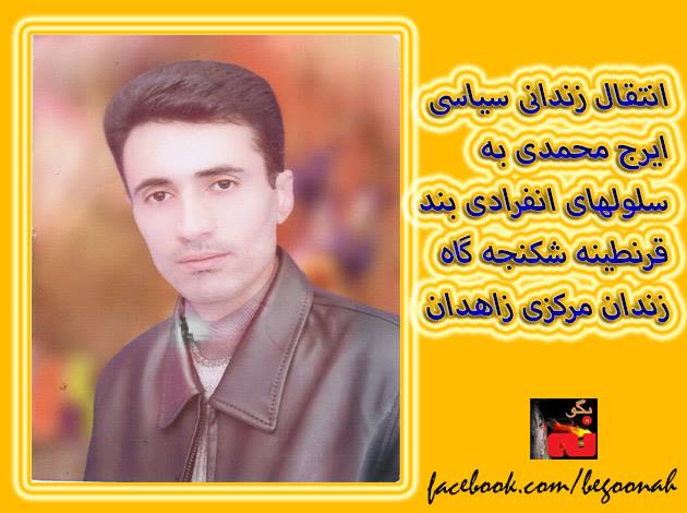 روز شنبه ۲۱ دی ماه زندانی سیاسی ایرج محمدی که بصورت تبعید در زندان مرکزی زاهدان بسر می برد به دلیل اعتراض به برخوردهای فردی بنام سرهنگ مهدی شکوری از نیروی انتظامی که به جرم اخاذی، رشوه گیری و کلاهبرداری از مردم در زندان است و در حال حاضر زندانیان سیاسی و عادی را مورد اذیت و آزار قرار می دهد، به سلولهای انفرادی بند قرنطینه شکنجه گاه زندان مرکزی زاهدان منتقل گردید.