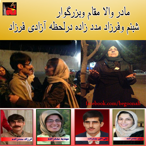 درود بر اين مادر و پدر فداكار با رنجي كه اين ساليان از شهادت دو فرزند خود مهديه مددزاده و علي اكبر مددزاده و اسارت شبنم و فرزاد بر دوش كشيد ولي هيچ كجا نامي از آنها نبود پدر شبنم در روز آزادي شبنم در مسير تبريز به تهران گفته بود: ميروم كه دخترم را درآغوش بگيرم و بگويم كه مفتخرم كه سربلند بيرون آمدي به اين اميد كه روزي شاهد آزادي همه مردم ايران باشيم.