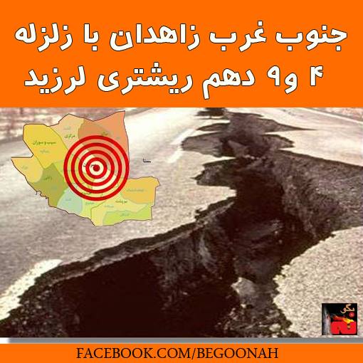 مرکز زمين شناسی آمريکا اعلام کرد زلزله ای به بزرگی ۴ و ۹ دهم ريشتر ساعت ۶.۱۶ صبح به وقت محلی در روز دوشنبه، حدود۱۰۰ کيلومتری جنوب غربی زهدان را در ايران؛ لرزاند. اين منطقه نزديک مرزشرقی ايران با پاکستان است.