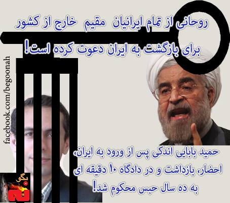 به گزارش سایت سودویند حمید بابایی روز ۵ مرداد ۱۳۹۲ به همراه همسر خود برای دیدار از خانواده وارد تهران شده بود، اندکی پس از ورود به ایران در ۲۲ مرداد ماه به وزارت اطلاعات احضار شد و مورد بازجویی قرار گرفت.
