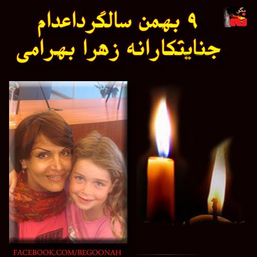 نهم بهمن ماه ۱۳۹۲ سومین سالگرد اعدام جنایتکار انه زهرا بهرامی که در تاریخ شنبه نه بهمن ۱۳۸۹ در ۴۵ سالگی به دار آویخته شد.