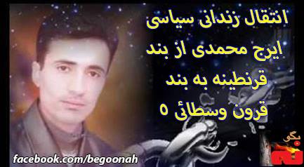 روز سه شنبه ۸ بهمن ماه زندانی سیاسی ایرج محمدی را پس از تحمل ۲ هفته شکنجه جسمی و روحی در شکنجه گاه زندان زاهدان معروف به بند قرنطینه به بند ۵ زندان زاهدان منتقل کردند. این بند محل نگهداری زندانیانی است که مبتلا به هپاتیت، ایدز و سایر بیماریهای عفونی و مسری هستند. این بند از امکانات اولیه بهداشتی محروم بوده و زندانیان بیمار در اثر عدم رسیدگی پزشکی جان خود را از دست می دهند.