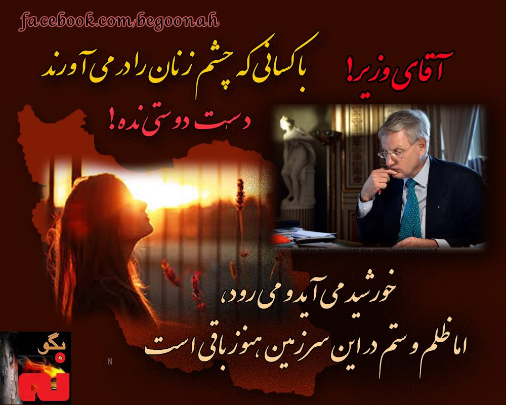 من به عنوان شهروندی ایرانی سوئدی خجالت می کشم از اینکه در روزنامه ها بخوانم که کارل بیلدت وزیر خارجه سوئد به ایران سفر می کند و با کسانی دست می دهد که درسوریه نسل کشی وکارهای تروریستی ، اعدام ، شکنجه، بی عدالتی، فساد در عراق و ایران ، خشونت علیه زنان و کودکان می کنند.