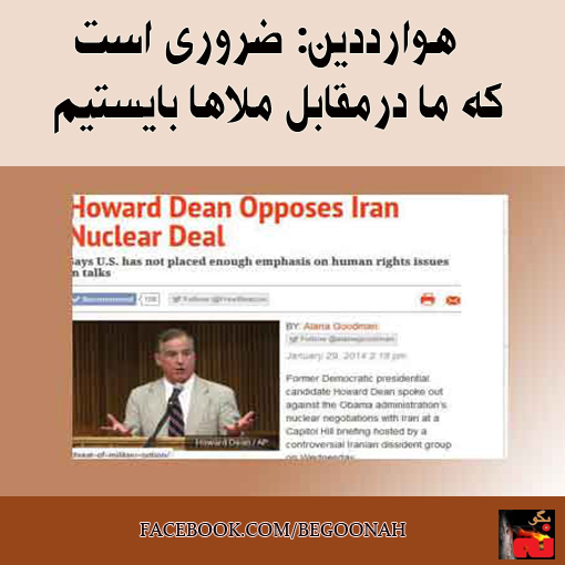 هوارد دين گفت، ”ضروري است ما در مقابل ملاها بايستيم. اينها كساني نيستند كه با ما بايد با آنها مذاكره كنيم“….