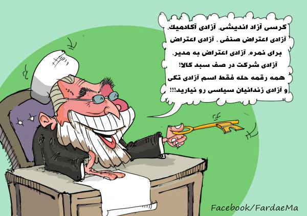 اگه تو متن سخنراني اين شياد كليدواژة «آزادي» جستجو كنيد، هيچ نتيجه اي دستگيرتون نميشه. او دجالانه از الفاظي مثل زبان علم و عقلانيت، كرسي آزاد انديشي يا آزاديهاي آكادميك استفاده ميكنه و هزار و يك پيشوند و پسوند واسه كلماتش ميذاره تا اصل موضوع كه آزاديه رو، دور بزنه و هيچ چيز در موردش نگه. غافل از اينكه دانشجوي امروز فريب اين مكر و حيلة آخوندي رو نميخوره و خواسته اي جز نفيِ تماميتِ ديكتاتوري ولايت فقيه نداره.