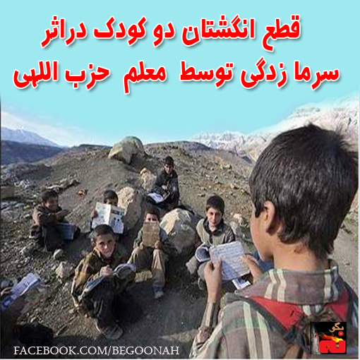 روز پنجشنبه ۱۷ بهمن ماه دو کودک ۱۲ ساله اهل کوهرنگ استان چهار محال و بختياري بدليل تنببه معلم حزب اللهي بر اثر سرمازدگي انگشتان پاهاي خود را ازدست دادند . يک معلم دو آتشه حزب اللهي اين دو کودک را صرفا به خاطر اينکه نتوانسته بودند براي دهه زجر رژیم آخوندی انشا بنويسند تنبيه کرد.