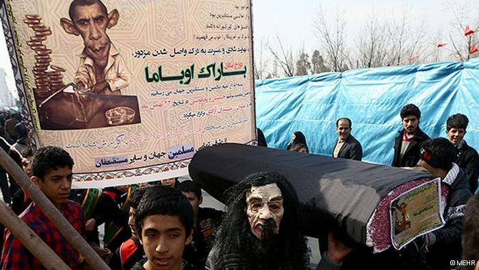 از نظر رهبران و پایوران باند ولی فقیه، تظاهُرکنندگان اما دیدگاه به کلی مُتفاوتی ابراز می کنند. برای مثال آیت الله جنتی تاکید دارد که آنها با اعلام «اشتیاق برای دیدن گُزینه های آمریکایی»، ایالات مُتحده را به جنگ دعوت می کنند.