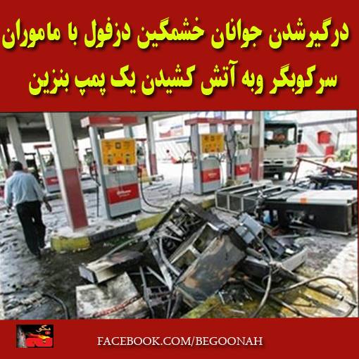 مردم غيور دزفول در جريان درگيری با نيروهای سرکوبگر، پمپ بنزينی را در خيابان مدرس اين شهر به آتش کشيدند.