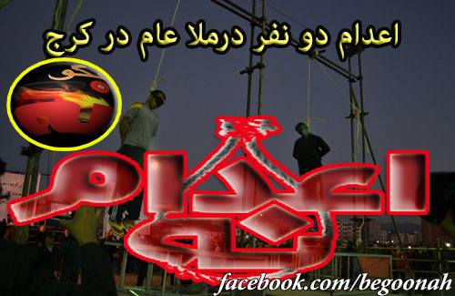 بنا به گزارش خبرگزاریهای رژیم امروز صبح دو نفر به نامهای «ا – ر» 23 ساله و «ن -ج» 37 ساله در کرج در ملاعام به دار آویخته شدند .
