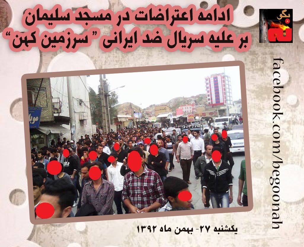 اخبار ادامه اعتراضات مردم در شهر مسجد سلیمان Date: فوریه 17, 2014Author: begoonah 0 دیدگاه روز يكشنبه 27 بهمن 92 همچنان خشم مردم دلیر بختیاری زبانه می کشد. مردم در شهر مسجد سلیمان اقدام به راهپیمایی و دادن شعار بر علیه سریال موهن » سرزمین کهن » کردند. اشتراکگذاری این:بیشتر به اشتراک گذاشتن در فیسبوک (در پنجرۀ تازه باز میشود) فیسبوک اشتراکگذاری در X (در پنجرۀ تازه باز میشود) X چاپ (در پنجرۀ تازه باز میشود) چاپ اشتراکگذاری در تلگرام (در پنجرۀ تازه باز میشود) تلگرام اشتراکگذاری در واتساپ (در پنجرۀ تازه باز میشود) واتساپ