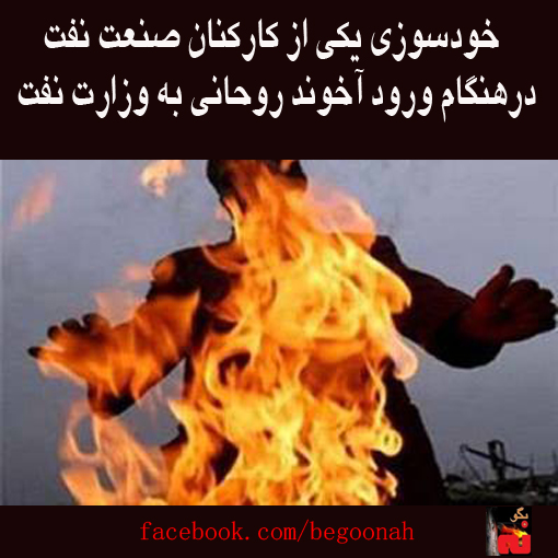وی که 58 سال دارد پس از ورود آخوند روحانی به ساختمان وزارت نفت اقدام به خودسوزی کرد که بلافاصله با آمبولانس عازم بیمارستان نفت شد.