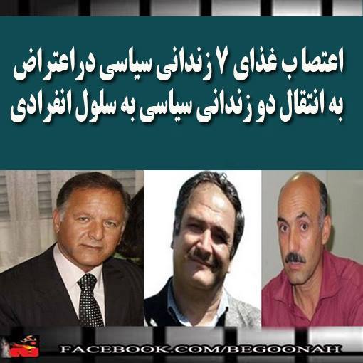 همزمان با انتقال این دو زندانی سیاسی به سلول انفرادی، هفت زندانی دیگر در اعتراض به اقدام دژخیمان زندان، از روز گذشته دست به اعتصاب زدهاند.