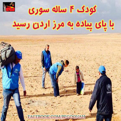 تصاویر این کودک ۴ ساله سوری روز گذشته نخست در صفحه توییتر » اندرو هارپر» عضو تیم امدادرسان بین المللی کمیساریای عالی پناهندگان سازمان ملل مستقر در مرز اردن و سوریه منتشر شد، این کودک در حالی که یک بسته پلاستیکی را تنها در مرز سوریه و اردن حمل می کرد به امدادرسانان سازمان ملل برخورد کرد. » کوپر» در صفحهاش نوشت : او اندکی پس از رسیدن به مرز سوریه و اردن به مادرش در این سوی مرز پیوست.
