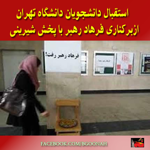 دانشجويان دانشگاه تهران با شنيدن خبر برکناری فرهاد رهبر رئيس مزدور دانشگاه تهران به پخش شيرينی در دانشگاه پرداختند.