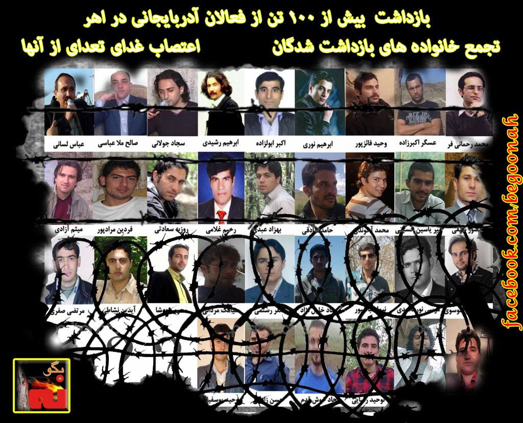 به گزارش گوناز تی وی،صبح روز جمعه ۲ اسفند ۹۲ ، خانواده های فعالین ملی-مدنی آذربایجانی که روز گذشته با هجوم وحشیانه ماموران امنیتی بازداشت شده اند،در مقابل مقر نیروی انتظامی شهرستان اهر تجمع کرده و به بازداشت بی مورد اعضای خانواده و بستگان خود اعتراض کرده اند .