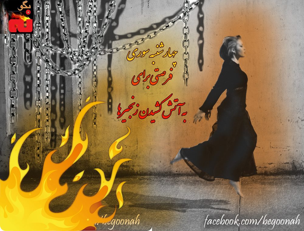 گالری فیلم و تصویر چهارشنبه سوری فرصتی برای به آتش کشیدن زنجیرهاست! Date: مارس 15, 2014Author: begoonah 0 دیدگاه اشتراکگذاری این:بیشتر برای اشتراکگذاشتن فیسبوک خود کلیک کنید (در پنجرۀ تازه باز میشود) فیسبوک اشتراک گذاشتن توسط اس ام اس (در پنجرۀ تازه باز میشود) X برای چاپ کردن کلیک کنید (در پنجرۀ تازه باز میشود) چاپ برای اشتراکگذاری روی Telegram کلیک کنید (در پنجرۀ تازه باز میشود) تلگرام برای اشتراکگذاری روی WhatsApp کلیک کنید (در پنجرۀ تازه باز میشود) واتساپ