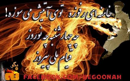 گالری فیلم و تصویر با شعله های خشم فروخورده خلقی در زنجیر, با الهام از مقاومتی سترگ برای آزادی , در جشن ملی چهارشنبه سوری بر ولایت منفور فقیه بتازیم ! Date: مارس 17, 2014Author: begoonah 0 دیدگاه اشتراکگذاری این:بیشتر برای اشتراکگذاشتن فیسبوک خود کلیک کنید (در پنجرۀ تازه باز میشود) فیسبوک اشتراک گذاشتن توسط اس ام اس (در پنجرۀ تازه باز میشود) X برای چاپ کردن کلیک کنید (در پنجرۀ تازه باز میشود) چاپ برای اشتراکگذاری روی Telegram کلیک کنید (در پنجرۀ تازه باز میشود) تلگرام برای اشتراکگذاری روی WhatsApp کلیک کنید (در پنجرۀ تازه باز میشود) واتساپ