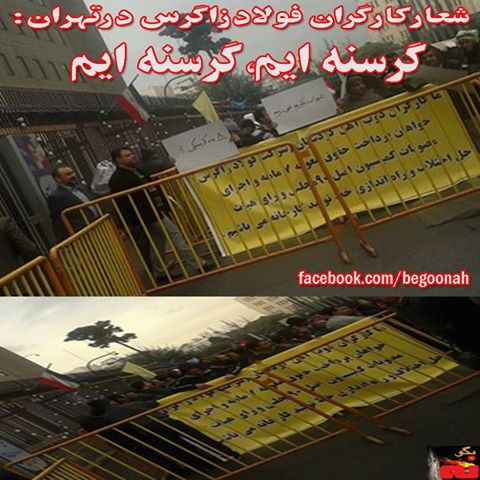 کارگران محروم کارخانه فولاد زاگرس در کردستان که بيش ازيک سال حقوق ومزايای آنها پرداخت نشده، صبح روز يکشنبه، ۲۵ اسفند در مقابل وزارت کار رژيم در تهران تجمع اعتراضی برگزار کردند.