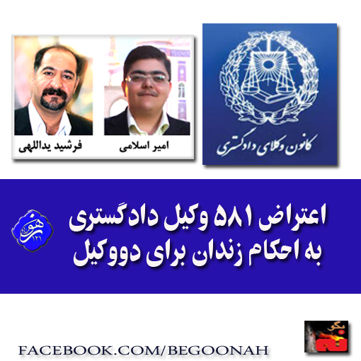 ۵۸۱ وکیل دادگستری طی نامه هائی به احکام صادره از سوی دستگاه قضائیه دیکتاتوری مذهبی آخوندی علیه دو تن از وکلای دراویش گنابادی اعتراض کردند.