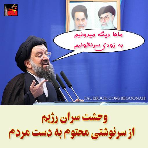 آخوند احمد خاتمی در نمایش جمعه امروز در تهران ضمن فحاشی به مردم و جوانان ناراضی و همچنین تنفر مردم از عوامل حکومتی، نسبت به سرنوشت محتوم عوامل رژیم و مجازات به دست مردم ابراز وحشت کرد.