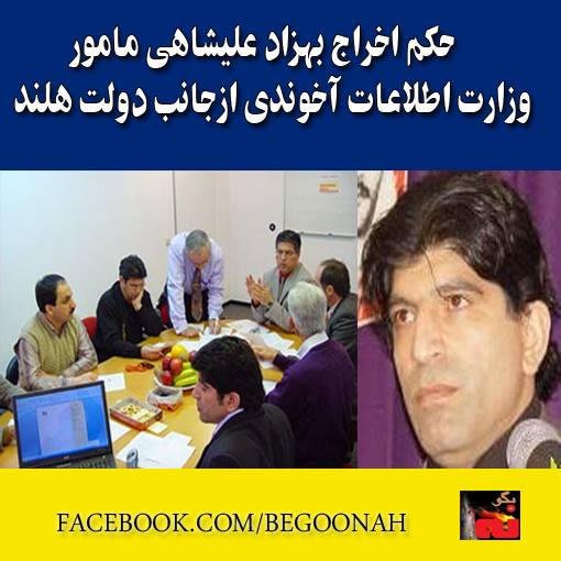 بنا براخباررسيده، بهزاد عليشاهي،يكي از ماموران وزارت اطلاعات درهلند به اتهام،ارتباط با وزارت اطلاعات وجاسوسي برعليه پناهندگان ايراني بوسيله دولت هلند،دستگير شده و هم اكنون دربازداشت است . به اوگفته شده است كه بايد خاك هلند را ترك كند . همسر اين مزدور نيز بايد خاك هلند را ترك كند