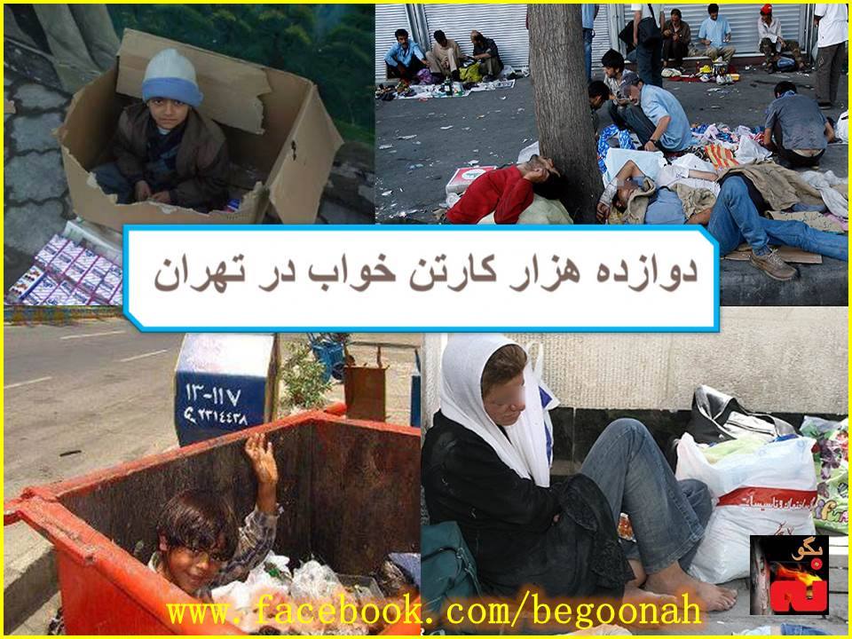 یک کارگزار حکومتی در شورای شهر تهران بدون اشاره به ناعدالتی و فقر گسترده از سوی رژیم آخوندی گفت: ”در بازدید از حاشیه تهران با مناطقی مواجه شدم که شهرداری منطقه ۲۰ می گفت به ما ربطی ندارد. طبق آمار سازمان رفاه شهرداری دوازده هزار کارتن خواب در تهارن وجود دارد که جزیره ای عمل کردن دستگاه ها یکی از عوامل زمینه ساز و آفات این مسئله است“.