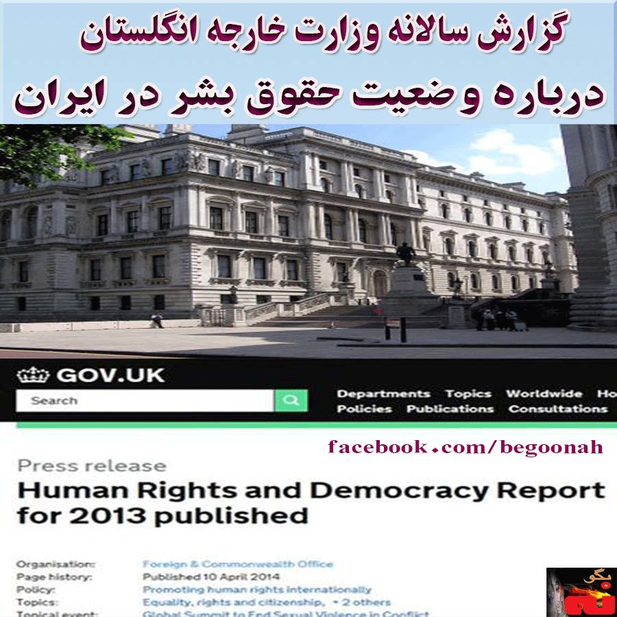 گزارش سالانه وزارت خارجه انگلستان که روز ۱۰آوريل ۲۰۱۴ (برابر با ۲۱فروردين ۹۳) منتشر شد، وجوه مختلف نقض حقوق بشر در ايران را ذکر کرده و تصريح می کند که در دوره آخوند روحانی، هيچ کدام از وعده های او انجام نشده است. بخشهايی از اين گزارش بدين قرار است: