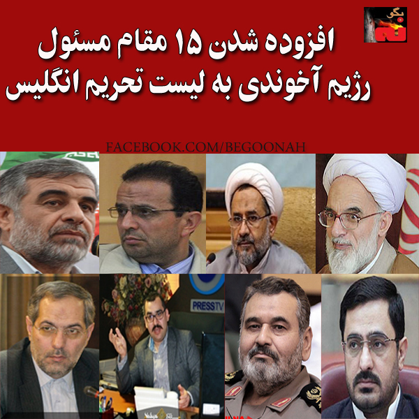 در ادامه تحریمهای غرب علیه رژیم ایران، ١٥ مقام کنونی و سابق رژیم از سوی وزارت خزانهداری انگلیس تحریم شدند.
