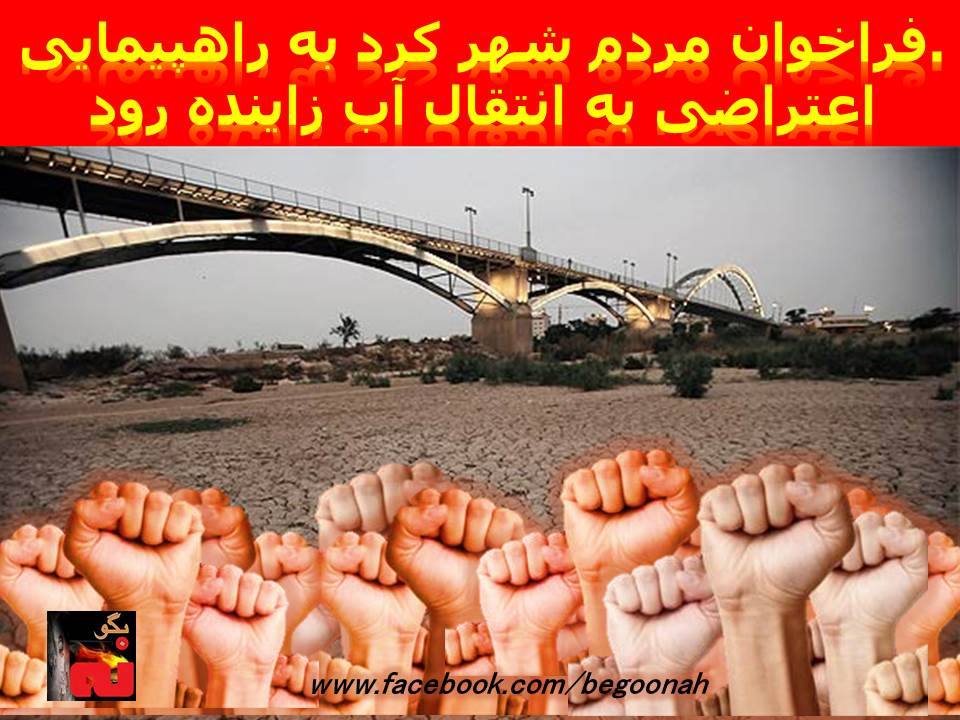 مردم شهر کرد به راهپيمايی در اعتراض به انتقال آب زاينده رود فراخوان دادند. رژيم آخوندی با ساخت و بهره برداری تونلهای بهشت آباد و گلاب، آب کارون را منتقل می کند. اين راهپيمايی ساعت ۱۰ صبح روز پنجشنبه ۲۸فروردين از چهار راه بازار به سمت چهار راه استانداری برگزار می شود.