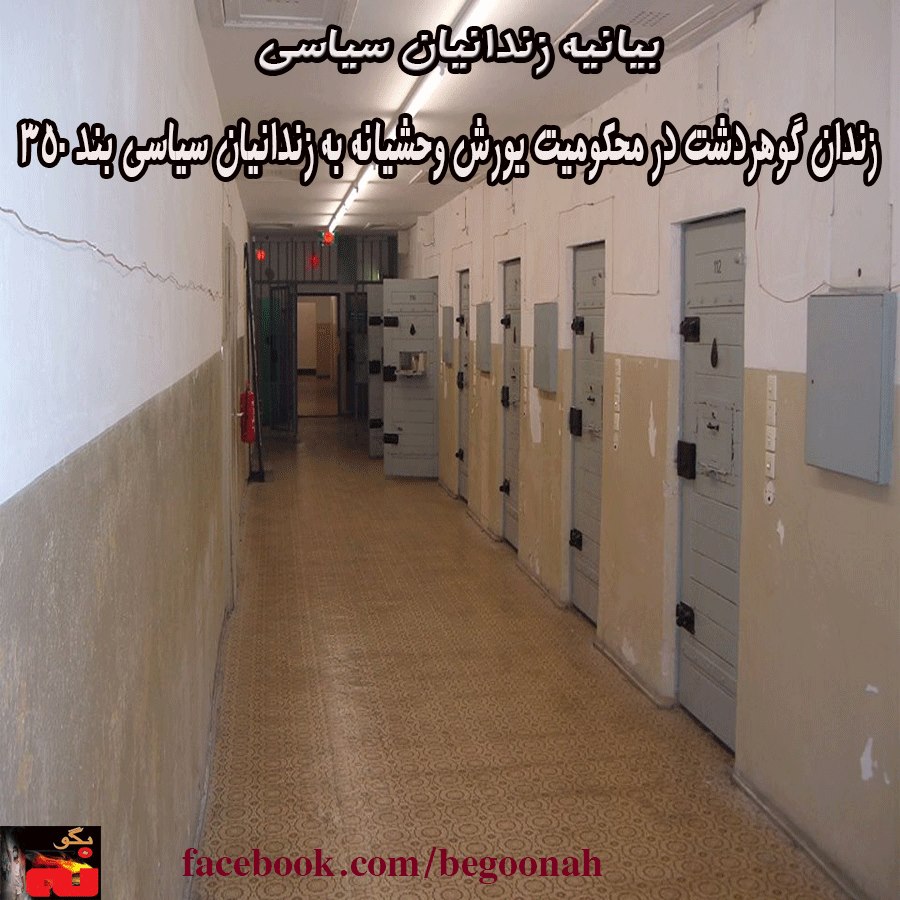 بیانیه زندانیان سیاسی زندان گوهردشت کرج در محکومیت یورش وحشیانه و خونین به زندانیان سیاسی بند ۳۵۰ زندان اوین که برای انتشار در رسانه ها و ارسال به سازمانهای حقوق بشری در اختیار « فعالین حقوق بشر و دمکراسی در ایران » قرار داده شده است متن بیانیه به قرار زیر می باشد: