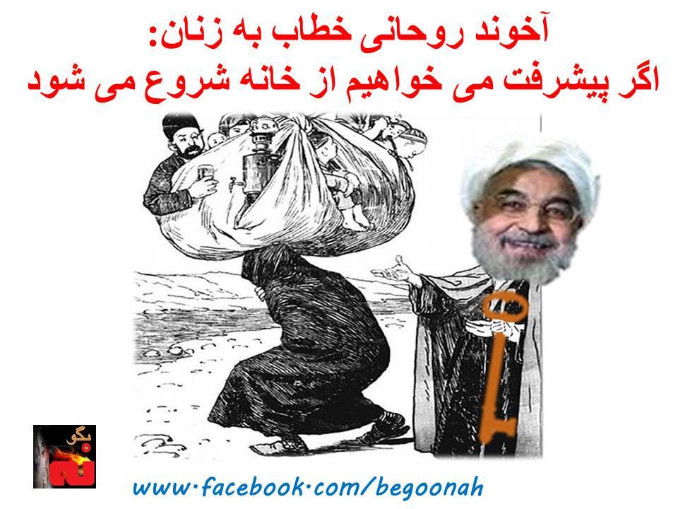 آخوند روحانی طی سخنانی اصلی ترين وظيفه زنان را «پيشرفت و تعالی» در خانه توصيف کرد و وظيفه زنان را «غرس نهال اميد در خانه ها» و افزايش «نشاط» در دل «فرزندان، همسران، پدران و مادران» خود معين کرد. روحانی روز يکشنبه، ۳۱فروردين۹۳در جمع ايادی دولتش موسوم به «معاونت امور زنان و خانواده» در لابلای انشاء خوانی های تکراری در مورد توجه به ”نيمی از جمعيت“ کشور و ارتباط مسأله زنان با دولت ”اعتدال، اميد و تدبير“ ، گوشه های ديگری از افکار پوسيده آخوندهای حاکم در مورد زنان را به نمايش گذاشت. روحانی گفت: ”هيچ وظيفه و رسالتی را بالاتر از تربيت فرزندان انسانها نمی توانيم قرار دهيم“. آخوند روحانی ”مقام مادری“ برای زن را ”مقامی بسيار شايسته و والا“ خواند و به زنان توصيه کرد اگر ”به جامعه آمدند“ مسئوليت مادری را فراموش نکنند و پرسيد ”آيا تربيت فرزندان و رسيدگی به امور خانه و رئيس خانه بودن (سيده بيتها) با حضور در جامعه در تضاد است؟“ روحانی زنان را فراخواند که ”نهال اميد را در خانه غرس کنند» و افزود:“ اين شما هستيد که بايد نشاط را در خانه نه تنها در دل فرزندانتان، که حتی همسرانتان، که حتی پدرانتان، مادرانتان، روز به روز بيشتر کنيد ”. روحانی در ادامه اين سخنرانی گفت: «اگر پيشرفت می خواهيم از خانه شروع می شود. اگر تعالی می خواهيم از خانواده شروع می شود. اين درست است که خانواده اساس و بنيان اصلی برای اجتماع و جامعه ما است. اين سخن به حق است که اصلاح از داخل خانه شروع می شود، اما بايد بدانيم اگر به نيمی از جمعيت کشور توجه نکنيم در آن کشور شاهد رشد نخواهيم بود“. روحانی در اين سخنرانی يکی از راههای احقاق حقوق زنان را انطباق ”نياز امروز جامعه با منابع فقه“ دانست. #ایران #زنان #اعتراض #بگونه