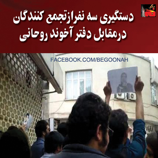 بنا به خبر دريافتي سه نفر از تجمع كنندگان در مقابل دفتر آخوند روحاني رئيس جمهور جنايتكار رژيم دستگير شده اند